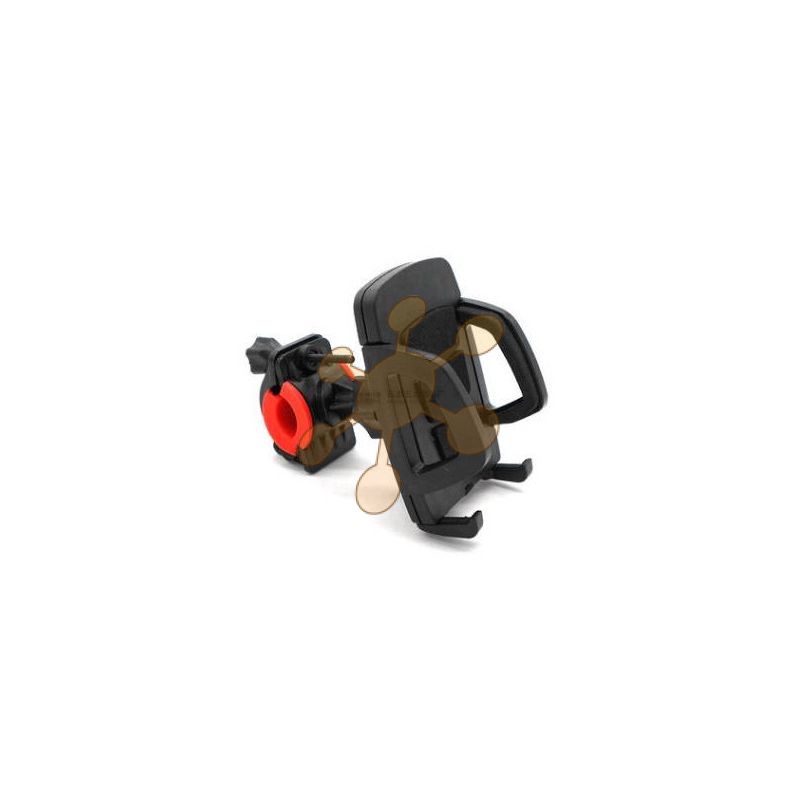 Z umelej hmoty vyrobený držiak na mobilný telefón s dobre prepracovaným uchytením proti vypadnutiu. Svorka na upevnenie na riadidlá sa dá dobre pritiahnút a nešmýka sa. Univerzálne veľkosti telefónu.